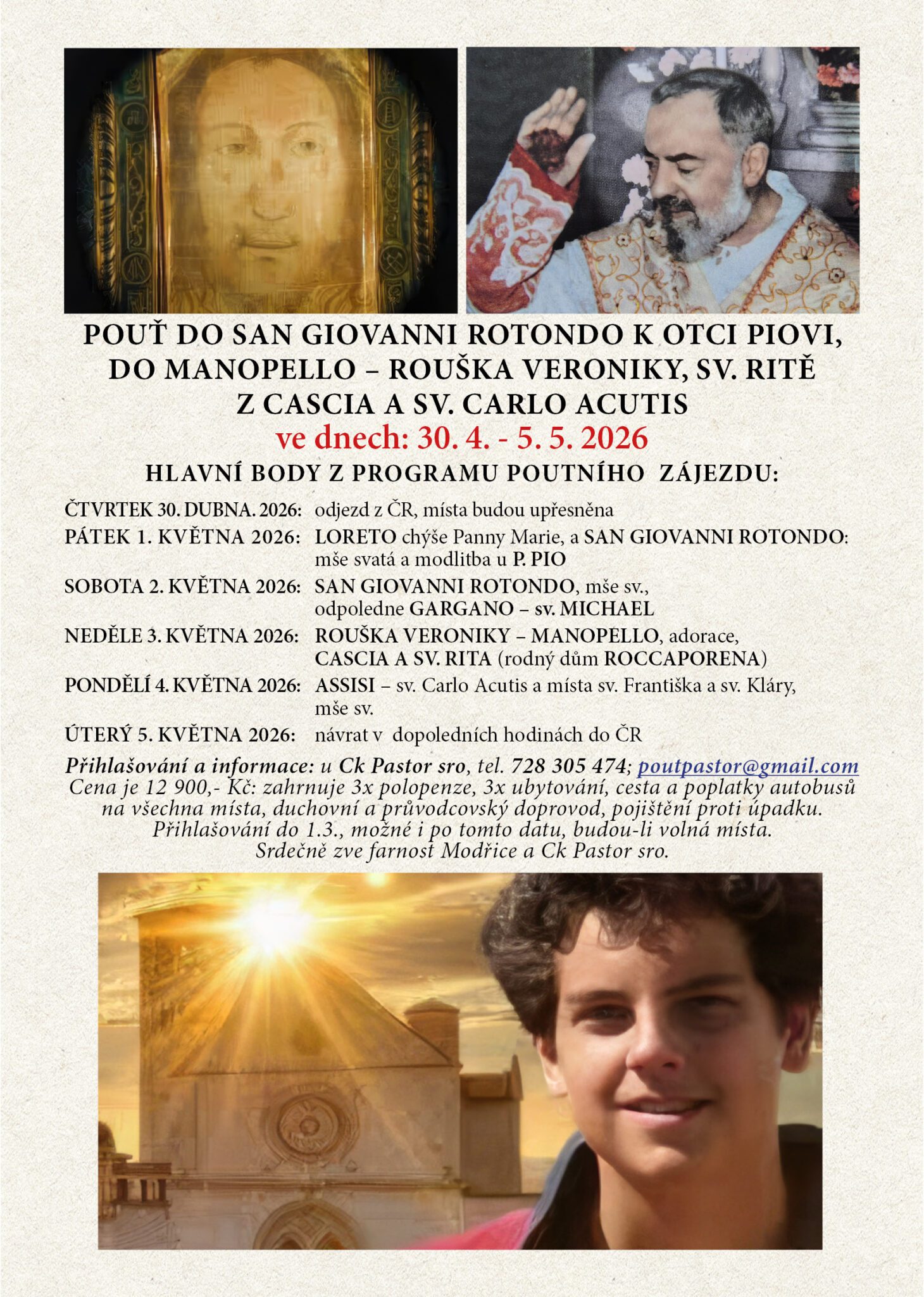 30. 4.︱Pouť do San Giovanni Rotondo, Manopello a Cascia