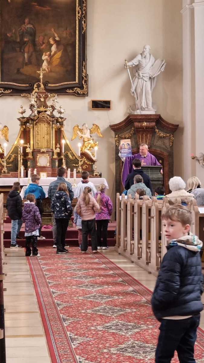 V neděli 15. března 2026 se v naší farnosti konala další dětská mše. Pan farář dětem v kázání přiblížil život dvou kněží, kteří budou letos v červnu blahořečeni na brněnském výstavišti. Jde o Jana Bulu a Václava Drbolu, kteří byli umučeni pro svou víru komunistickým režimem. Po vyslechnutí kázání děti přinesli v průvodu obětní dary a pomodlily se Otčenáš kolem oltáře. V závěru mše si společně zazpívali hezkou ukazovačku. Mši svou hrou a zpěvem doprovázela farní scholička. V ohláškách nám taky modřičtí poutníci sdělili zážitky z cyklopoutě, na kterou se v uplynulých dnech vydali.