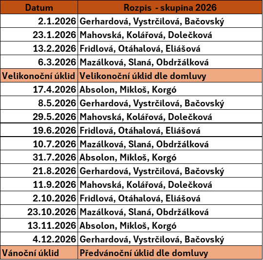 Rozpis úklidu na rok 2026